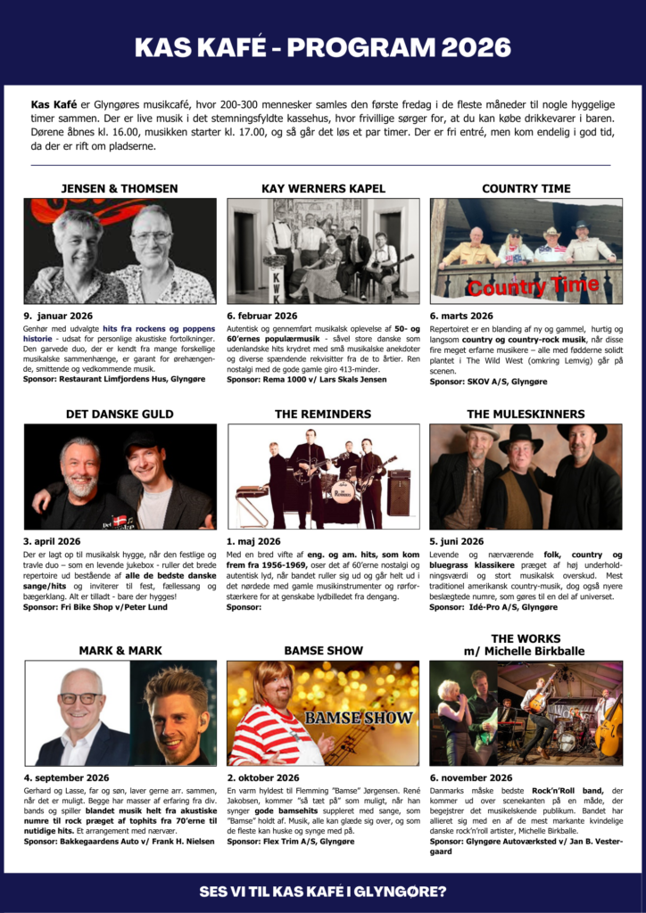 Musik ansvarlig for Kas Kafé er John Juul Pedersen og kan kontaktes direkte på Mail: john@tvgaarden.dk